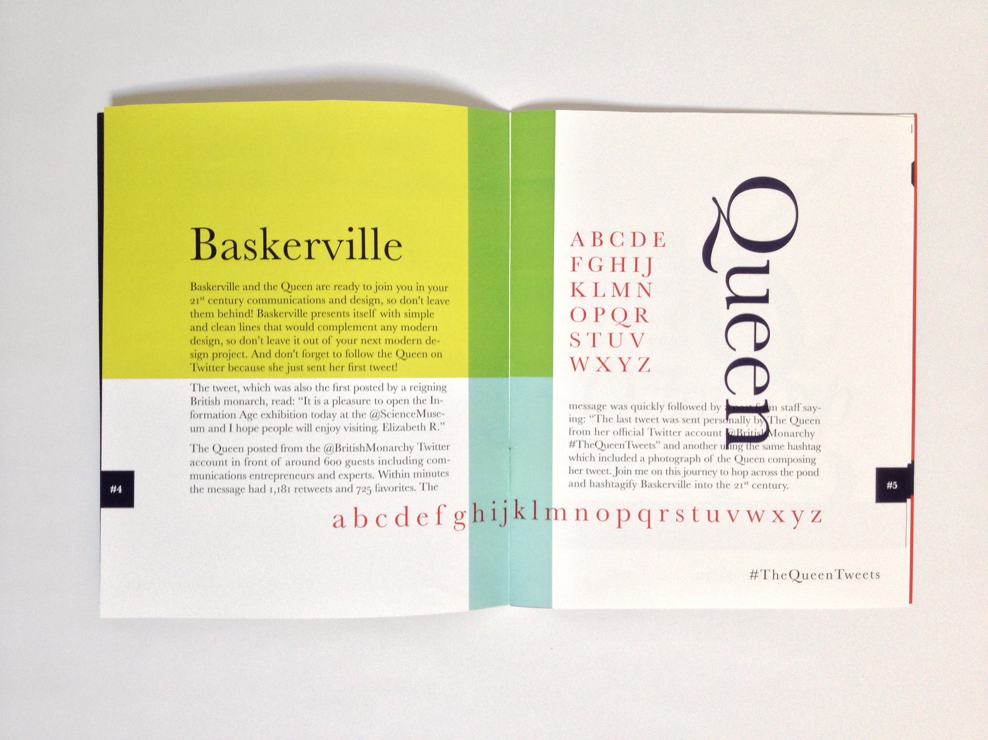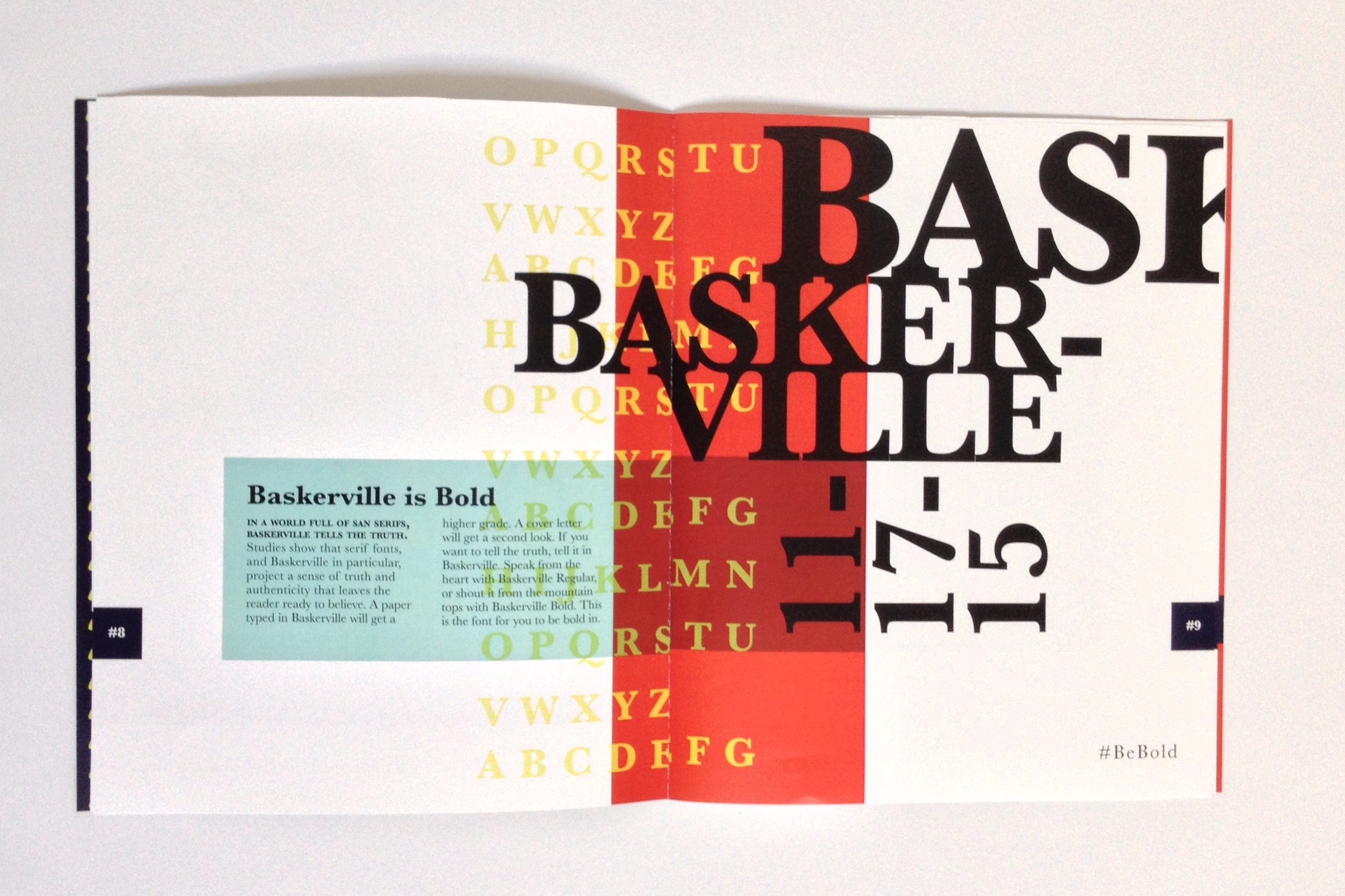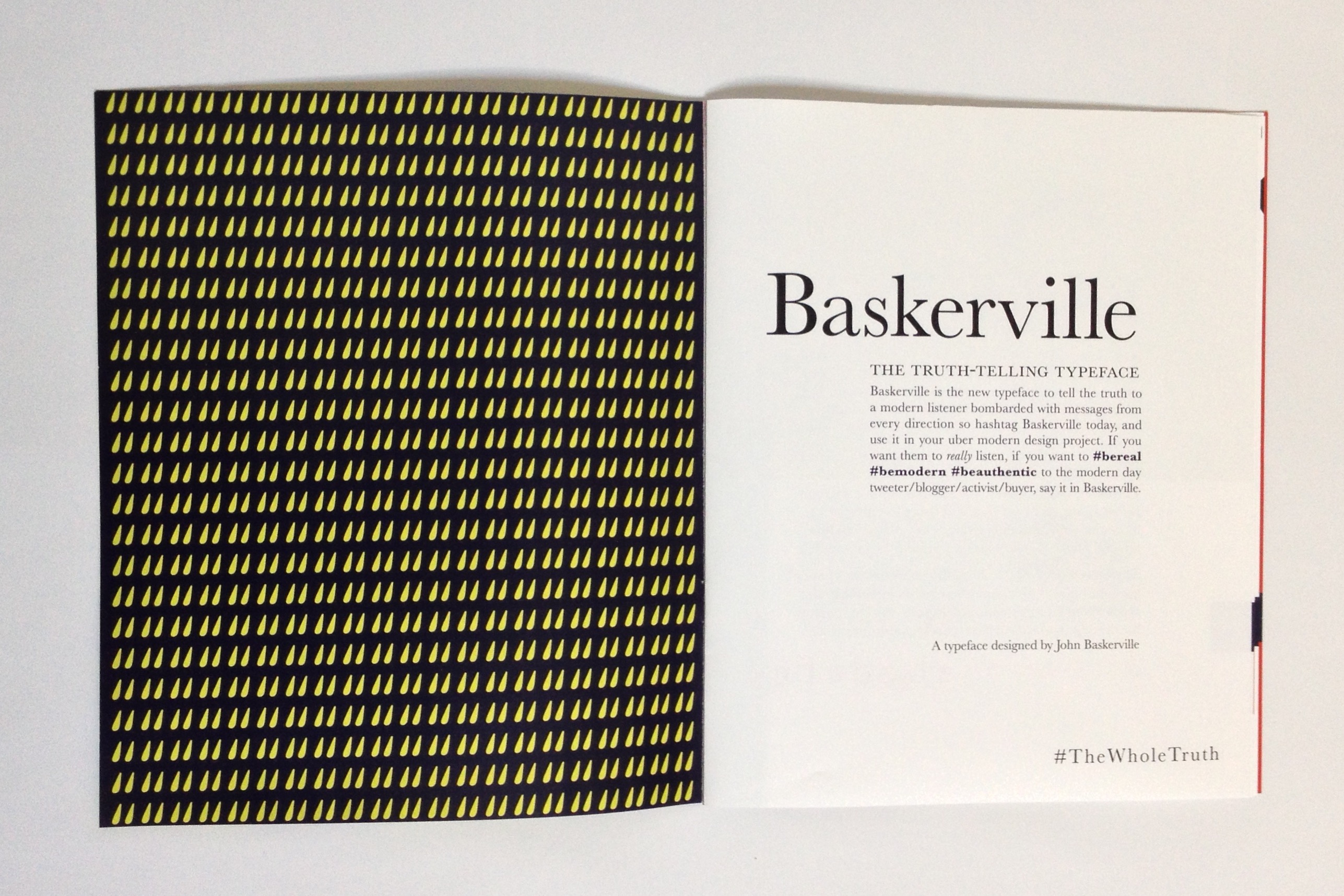 This font booklet features the Baskerville typeface. It’s not the typeface of old books and legal documents, it can join the hashtag culture of 2015!