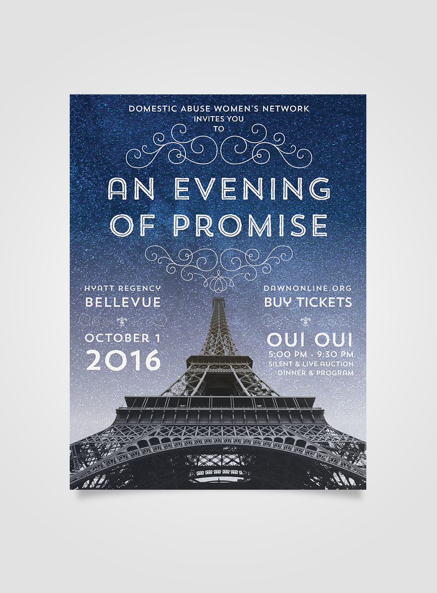 This postcard invite was created for a local nonprofit holding a Paris-themed fundraising event.