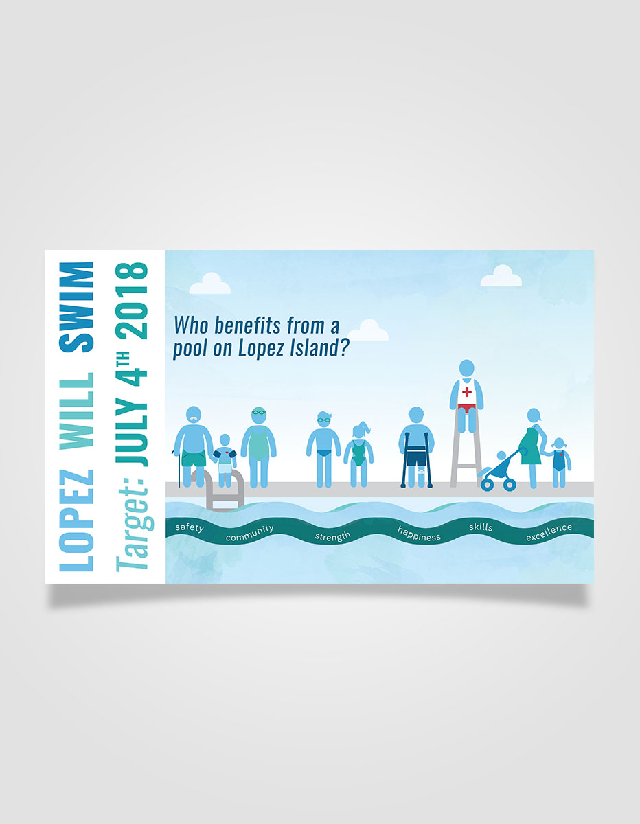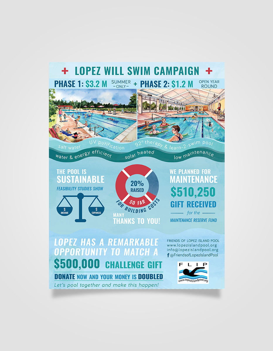 This piece was used as mailer to raise funds for a community pool on Lopez Island. It raised more many than any other campaign before it.