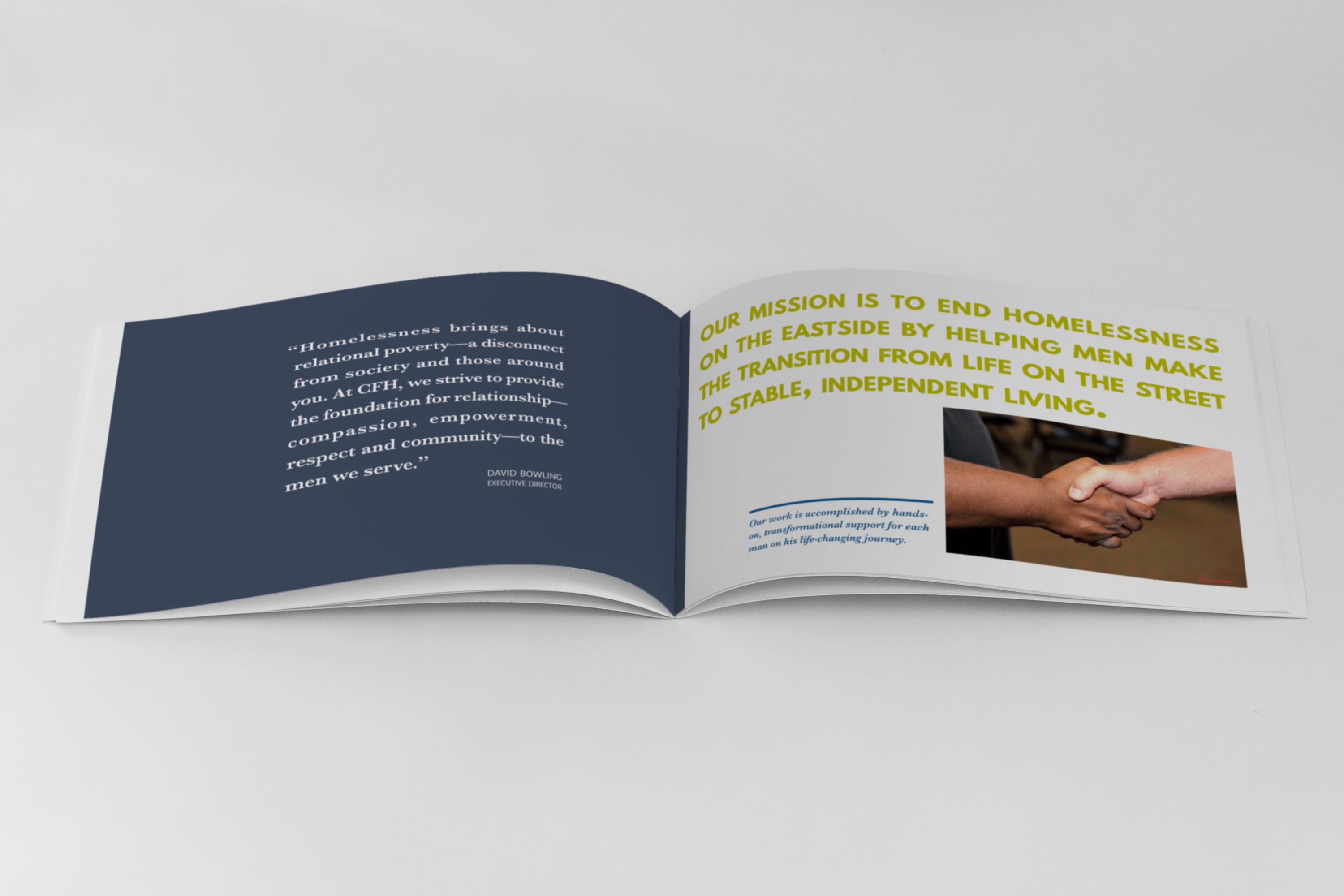 This is a case statement used by a nonprofit that serves homeless men. This piece is designed to inform key stakeholders and donors about the important work they do and their goals for the future.