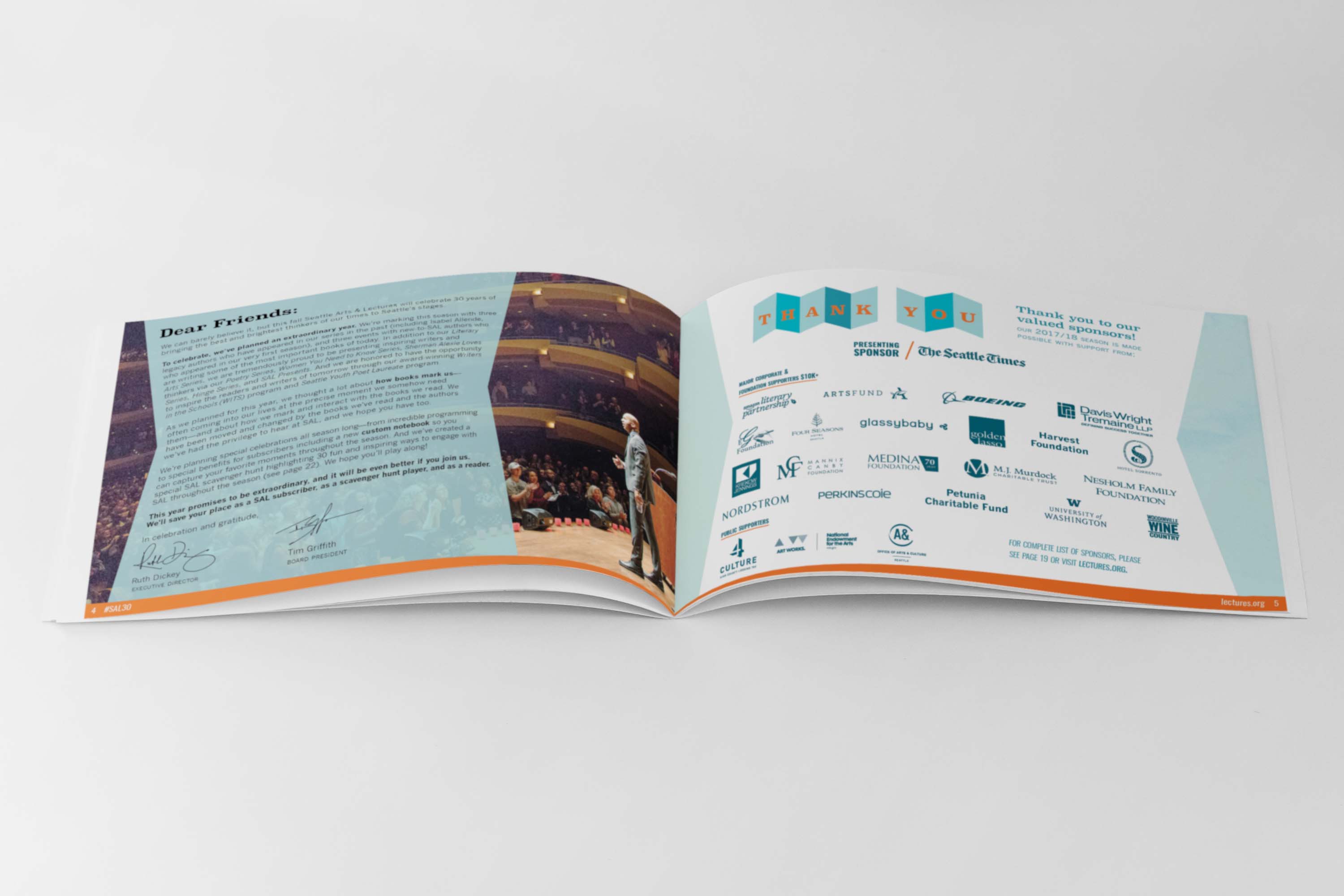 This brochure celebrated Seattle Arts & Lectures' 30th Anniversary!
